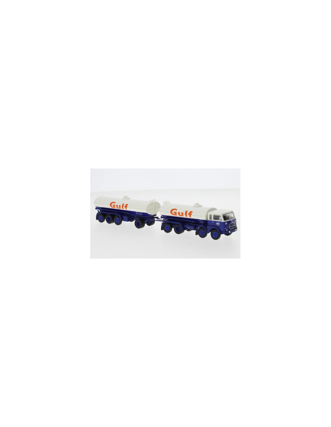 Autocisterna Fiat 690 Millepiedi, blu e bianca, GULF, 1960