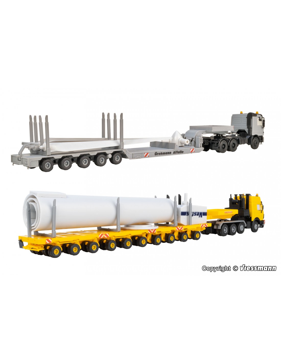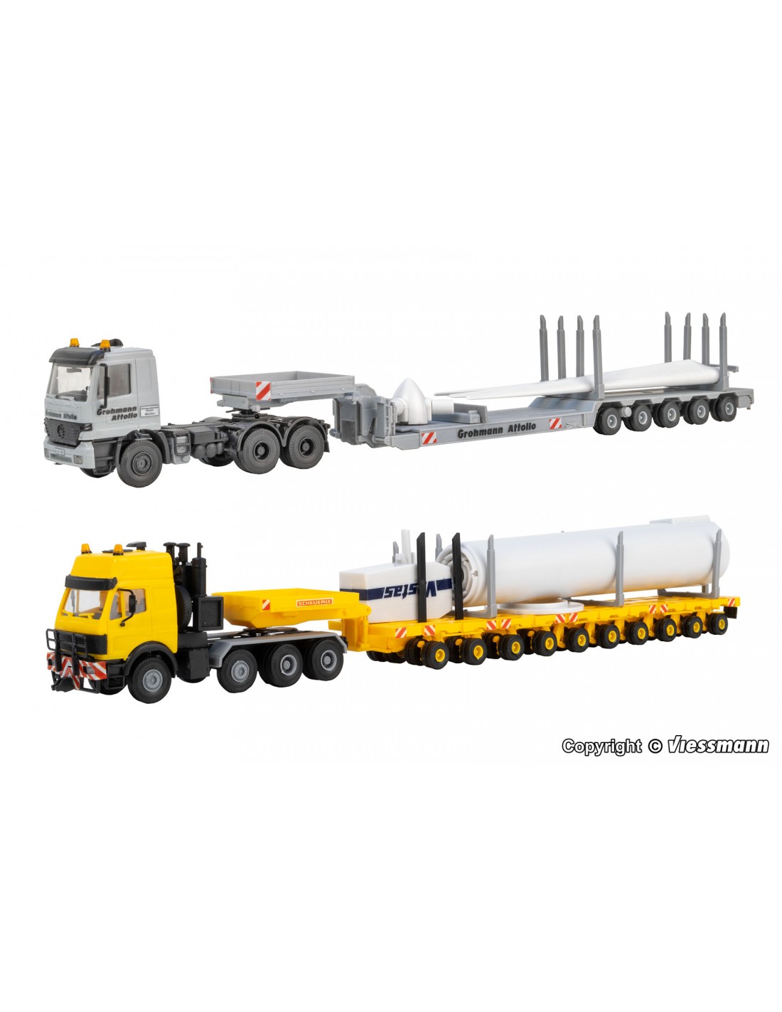 Consiste in una turbina eolica, suddivisa in 2 autoarticolati. MB Actros a 3 assi con pianale ribassato Scheuerle e MB SK con pianale ribassato Scheuerle.