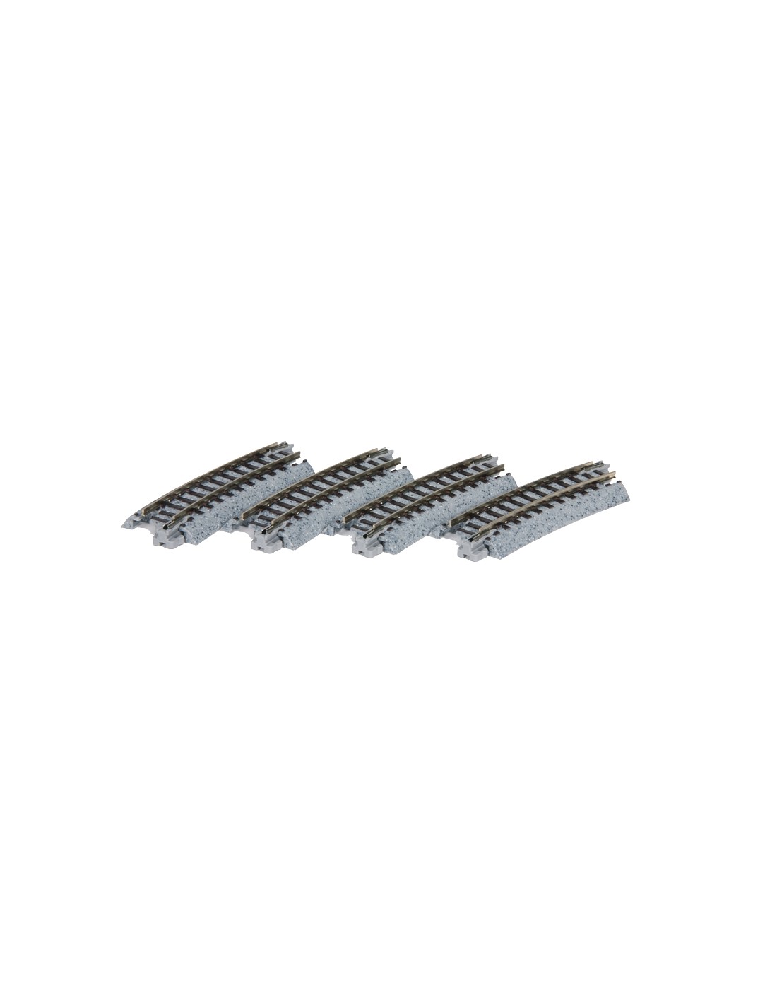KATO offre un eccezionale sistema di binari in scala N con massicciata grigio maculato (a grana fine) che è preciso in scala, estremamente stabile e ideale per tutti i modelli in scala N. Il corpo è realizzato in plastica elastica ed è largo circa 25 mm. Le tracce possono essere facilmente collegate tra loro tramite connessioni plug-in e si inseriscono con un "clic" udibile.