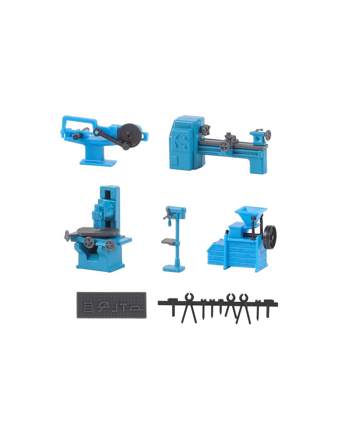 Il set è composto da una fresatrice, una trapano, un seghetto, un tornio, una parete per utensili e vari strumenti di forgiatura. Questo kit di costruzione contiene: 77 parti singole in 3 colori e 1 istruzione di costruzione. Usa la colla per la plastica FALLER Expert 170492