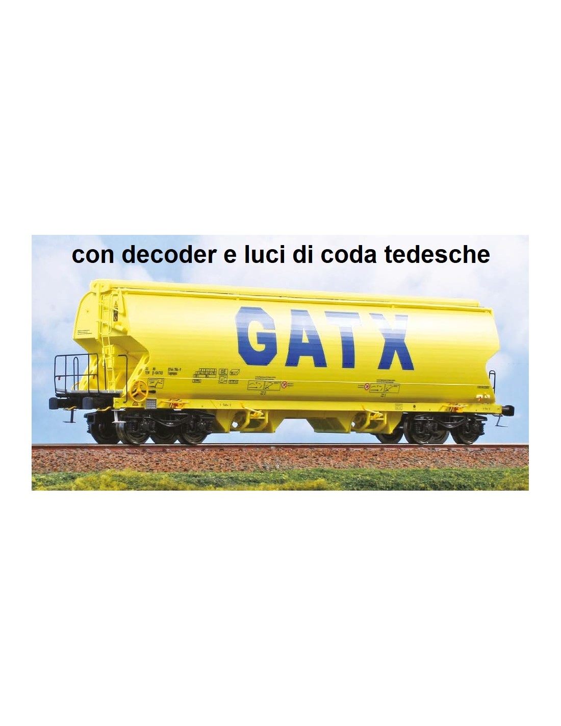 Carro tramoggia per trasporto cereali Tagnpps 95m³, GATX, livrea verde. Epoca VI. H0, DC con luci di coda tedesche