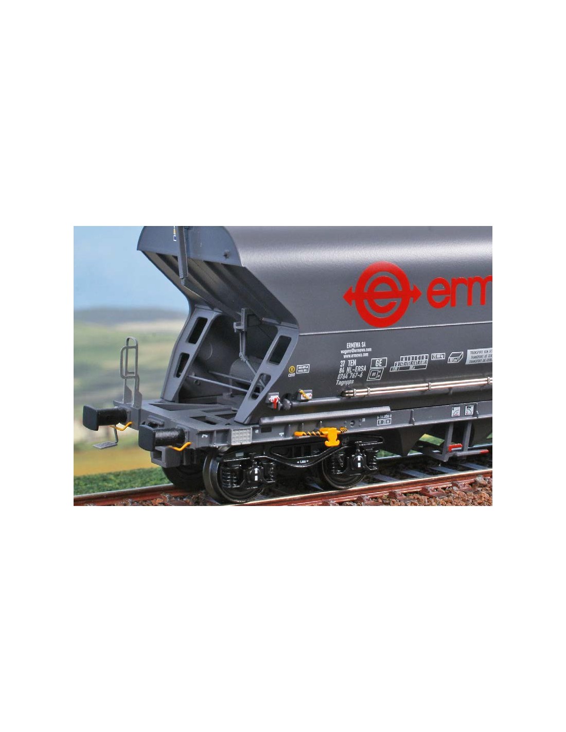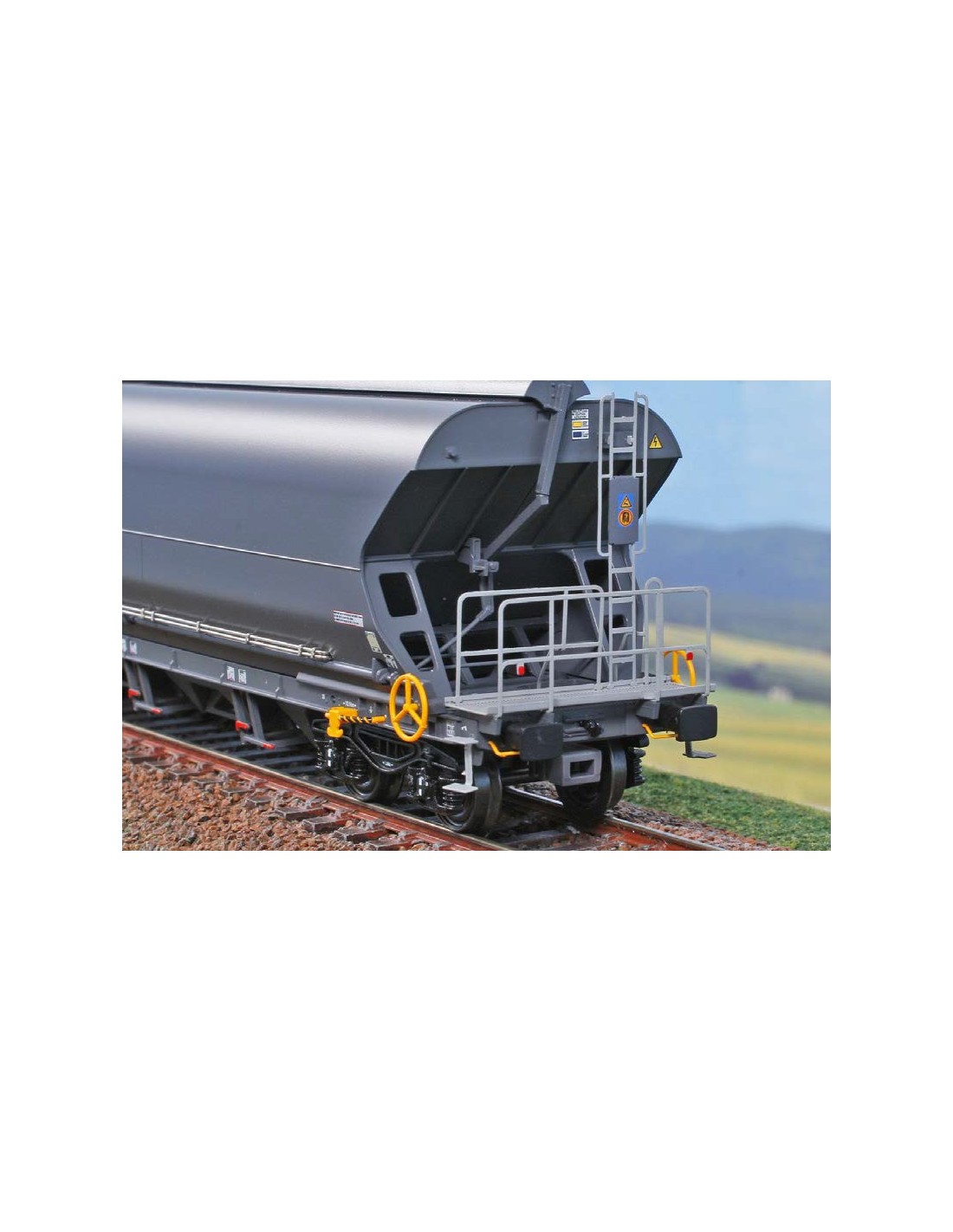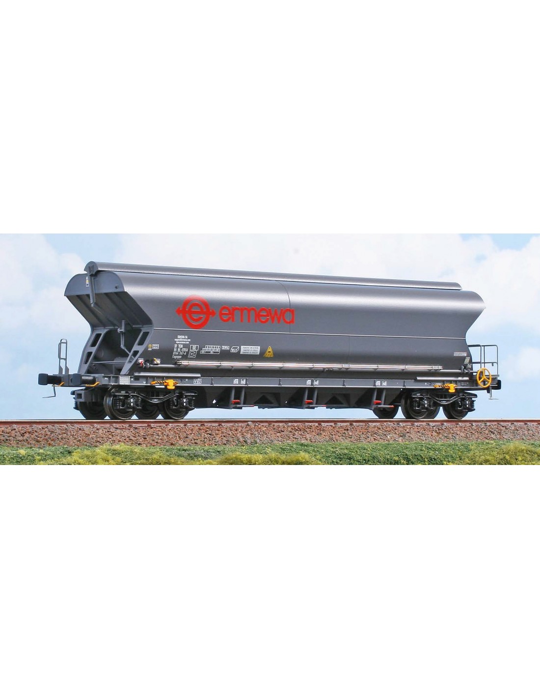 Carro tramoggia per trasporto cereali Tagnpps da 101m³, con scritta rossa ERMEWA, livrea grigia. Epoca VI. H0, DC