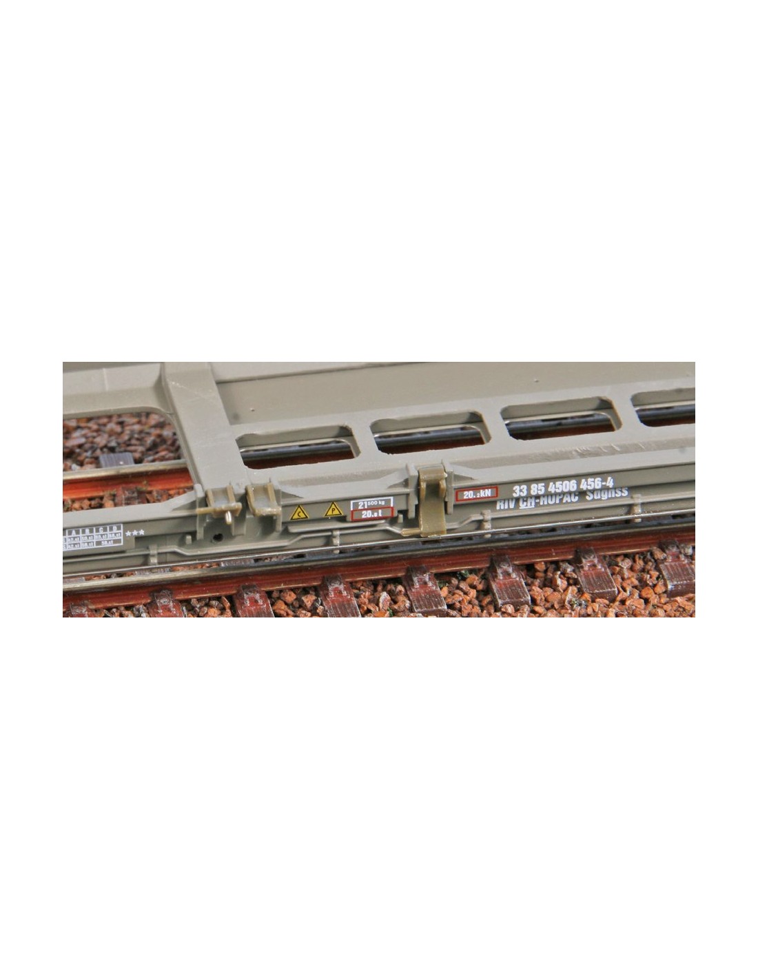 Carro T5 Sdgnss Hupac per trasporto veicoli e container/casse mobili, nella livrea grigia dei primi anni 2000. Epoca VI - H0,DC.