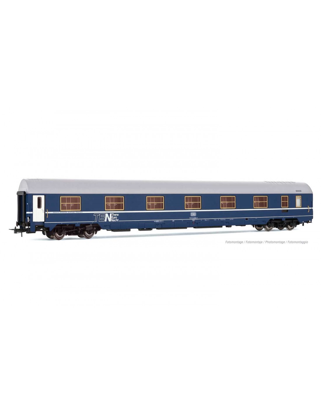 Carrozza letti MU delle DB, livrea TEN con tetto color alluminio. Ep. IV-V