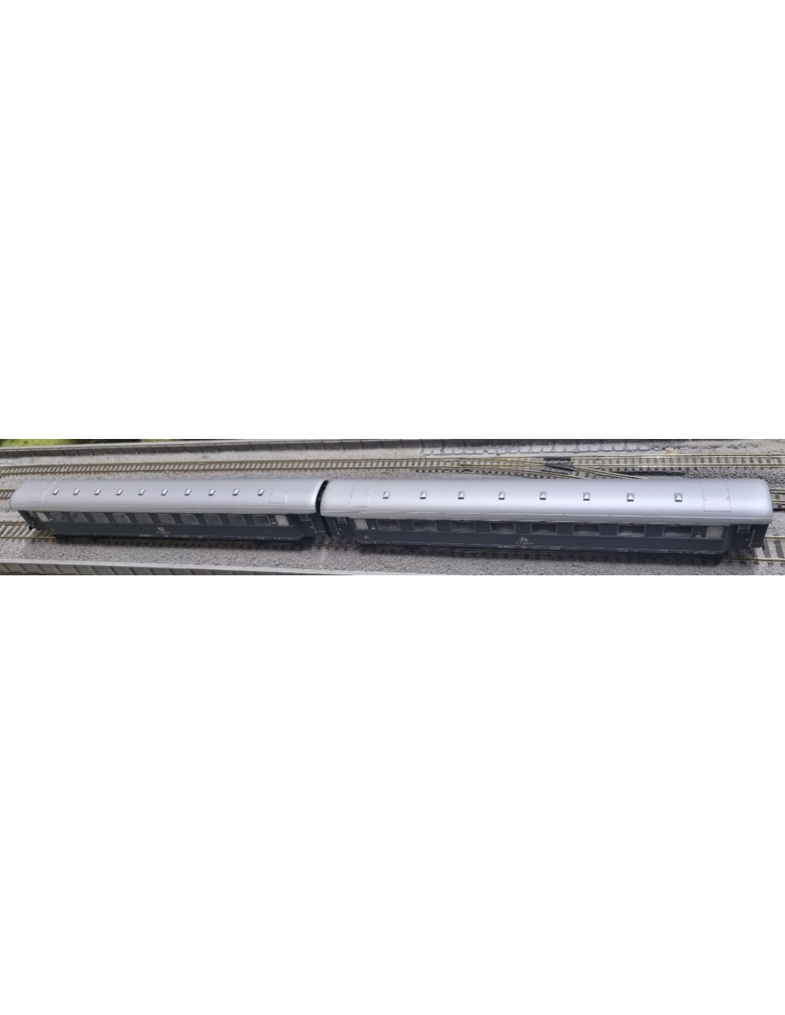 Riproduzione completa di numerosi dettagli con tampografie specifiche. Le due carrozze sono caratterizzate dalla presenza degli aeratori sul tetto.