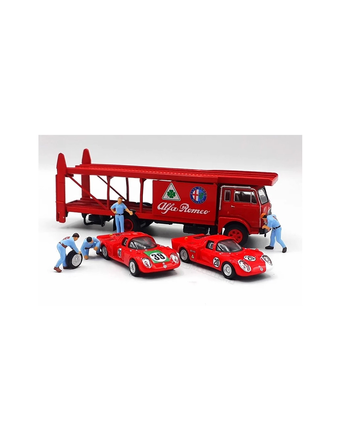 BREKINA 58477 FIAT 640 bisarca Alfa Romeo con 2 Alfa Romeo Daytona e 4 meccanici