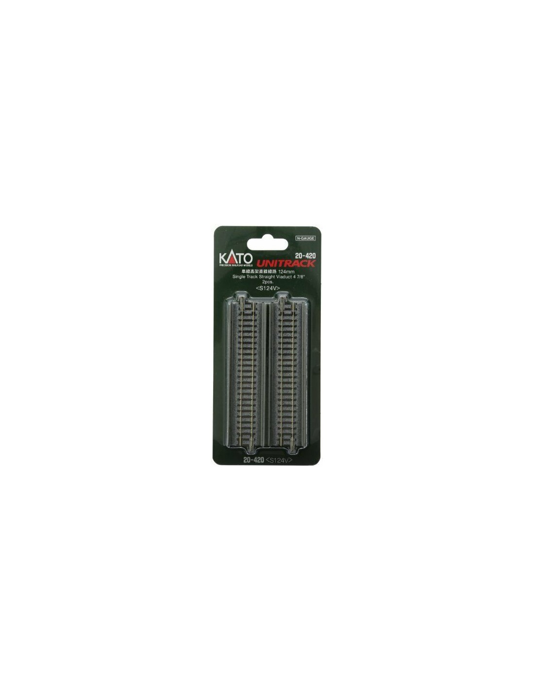Binario diritto Unitrack S124V per viadotto, 124mm, 2 Pz.Binario con massicciata, codice 80, Scala N