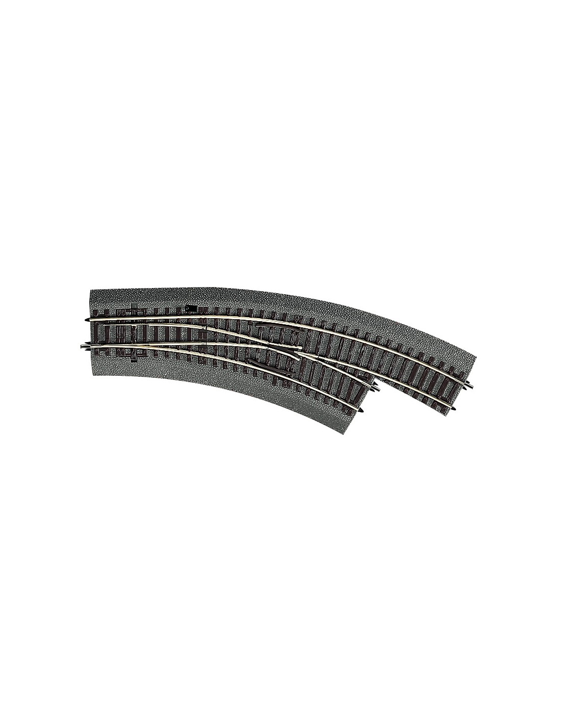 Deviatoio in curva destro BWr2/3 sistema binari Roco Line con massicciata, azionamento manuale, cuore NON polarizzato, tallonabile.