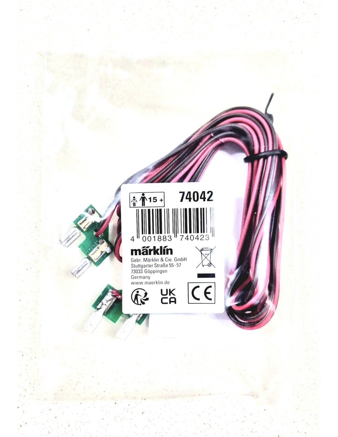 Cavo di alimentazione rosso e marrone con spine piatte per binario C (Maerklin e Trix) ad entrambe le estremità. Lunghezza 2 m.
