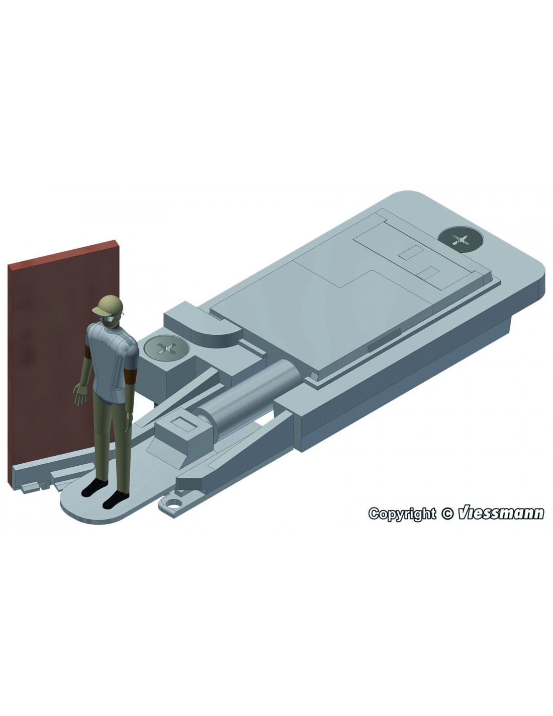 Azionamento potente e silenzioso in un design piatto con piastra di azionamento a rotazione lenta, ideale per lo spostamento di porte ad un'anta. Il decodificatore digitale associato si trova come un assieme nel cavo, motivo per cui l'unità è particolarmente compatta. Comprende i formati Märklin-Motorola e DCC e può inviare la posizione target richiesta o la posizione effettiva tramite RailCom a centri digitali compatibili.