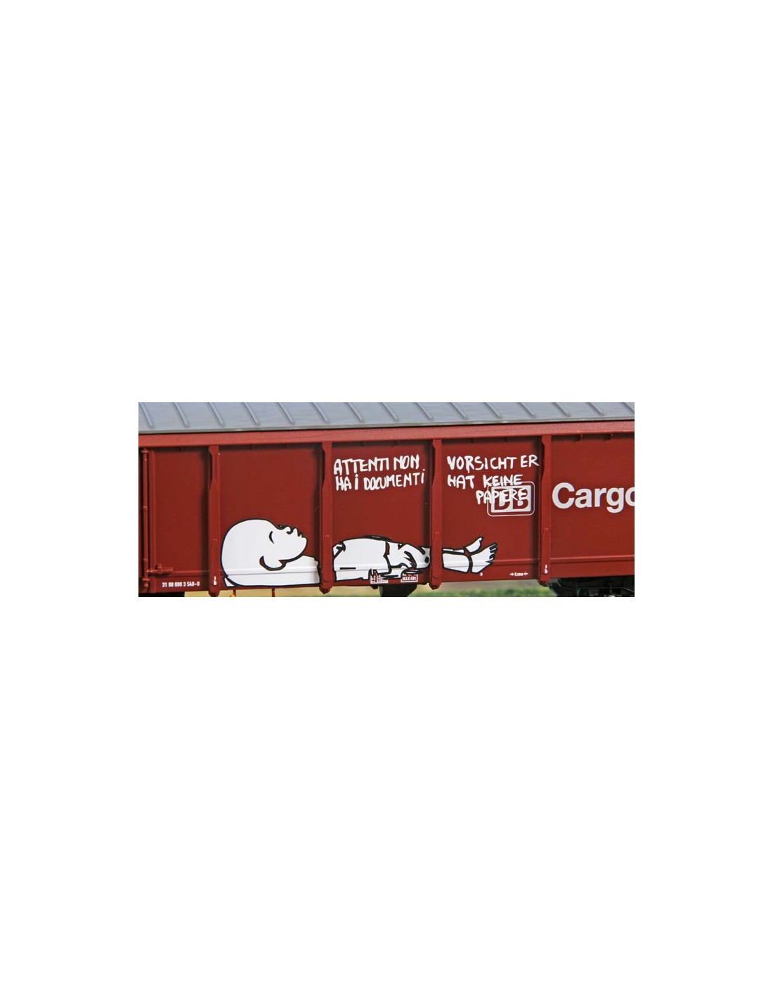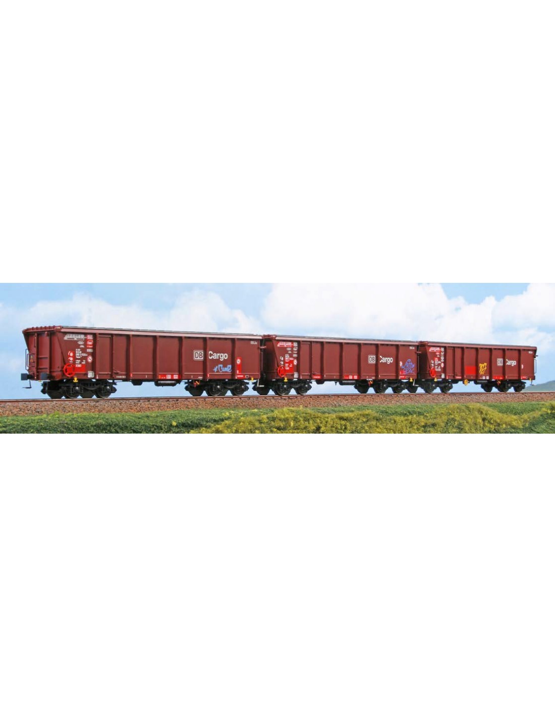 Set di tre carri Tamns895 “DB Cargo” con pezzature e graffiti, così come in servizio allo stato attuale. Tutti i carri sono decorati su entrambi i lati ed in modo differente tra di loro.