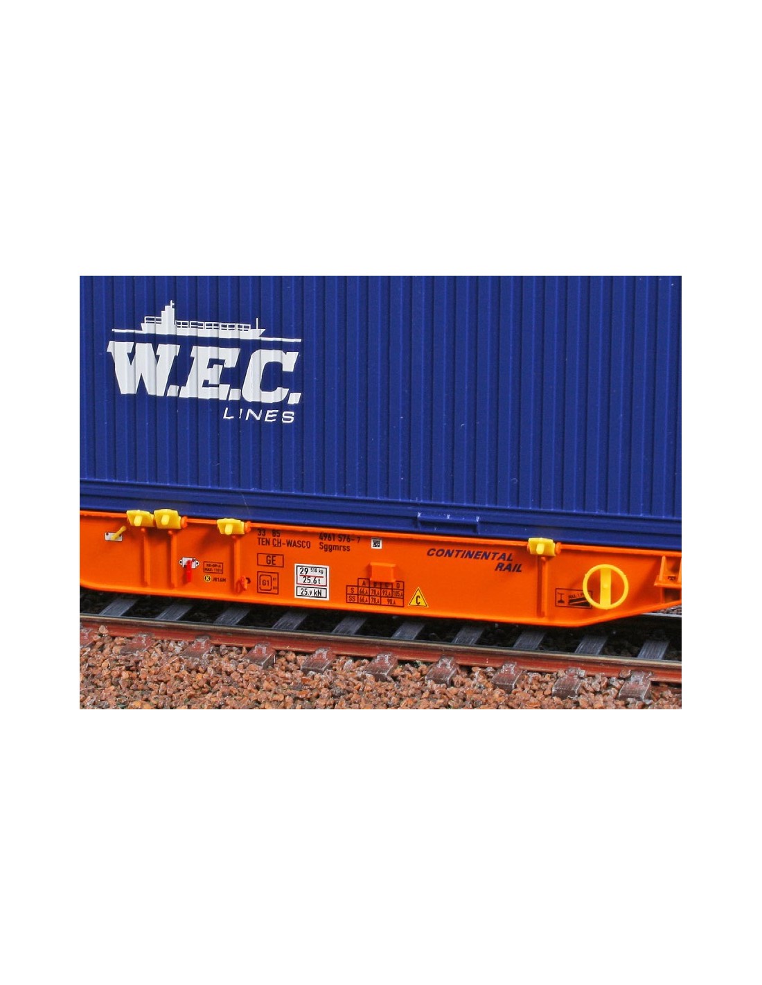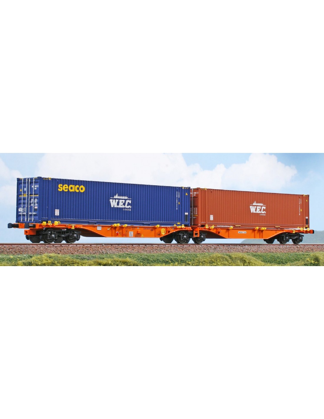 Carro intermodale Tipo Sggmrss 90‘ Wascosa di nuova costruzione, con due casse mobili “W.E.C.”, per i servizi internazionali verso la penisola iberica.