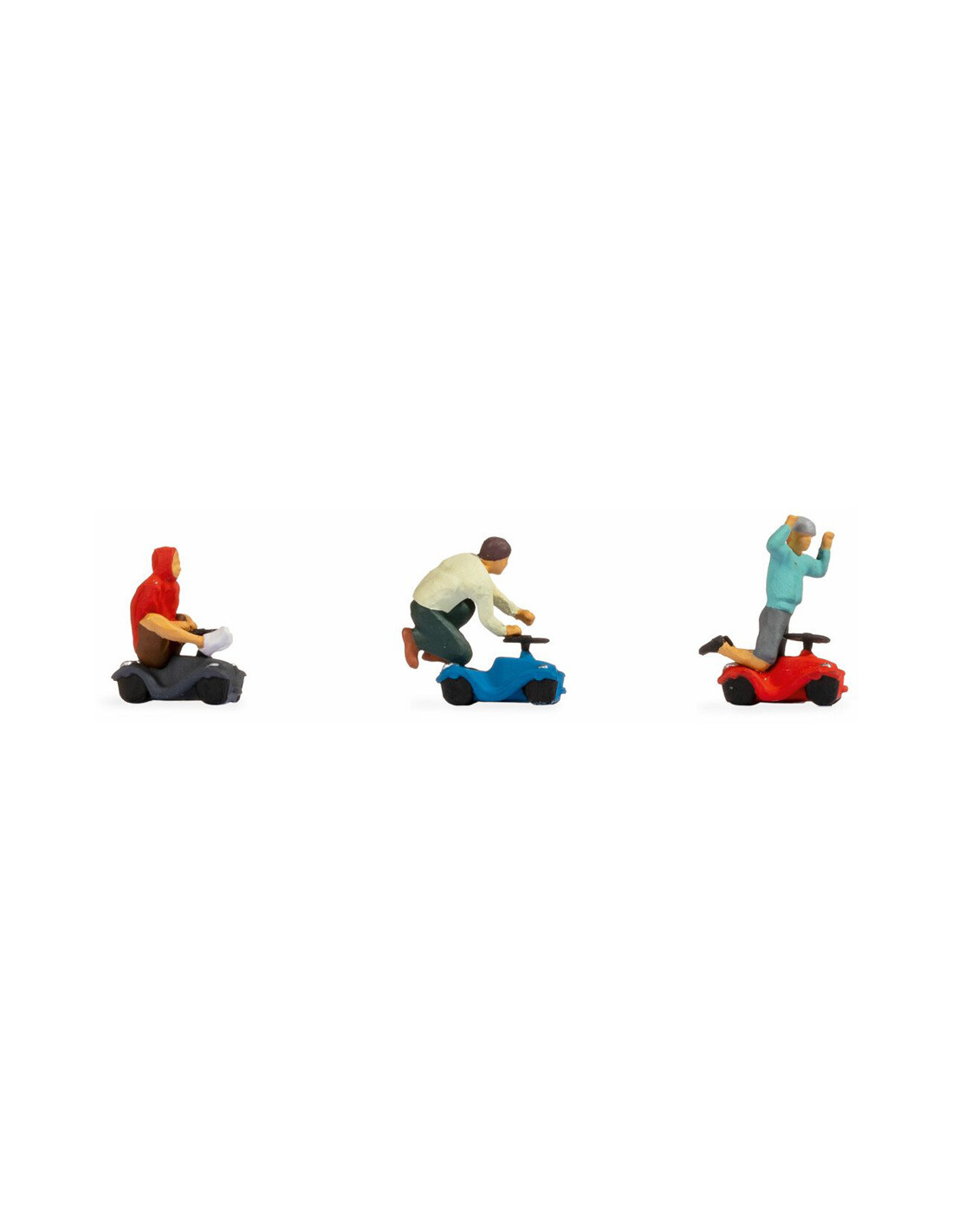 Set 3 personaggi, corsa su auto da bambino.
