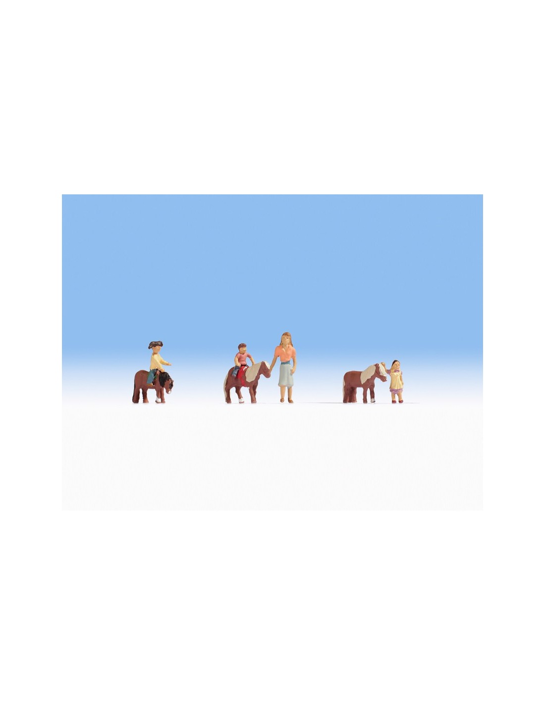 7 figurini: 3 pony, 3 bambini e una donna
