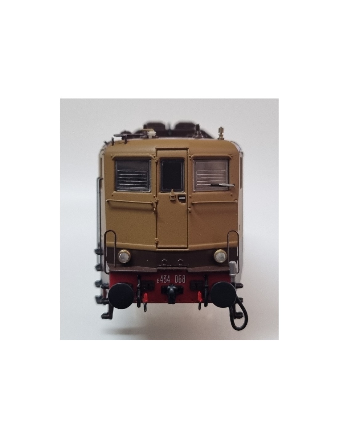 Cassa per 60329, locomotive elettrica delle FS E434.068 nella livrea castano e Isabella, porte di accesso sia frontali che laterali, scalette piccole, Epoca III