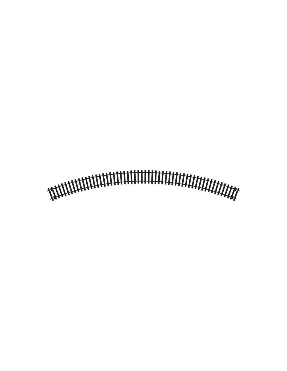 Binario doppia curva, raggio 3, in Nickel Silver con traversine in materiale plastico.