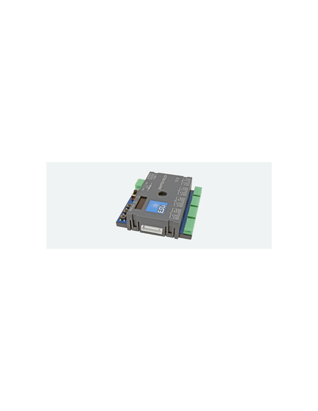 Lo SwitchPilot 3 può essere impostato in modo flessibile sia sul binario di programmazione con centri DCC che sul binario principale con POM ("Programmazione su principale") o anche letto utilizzando CV RailCom®. Se lo si desidera, apprende anche gli indirizzi direttamente tramite un pulsante di programmazione. Naturalmente, il modo più semplice è utilizzare il display OLED integrato e i tre pulsanti di input: tutte le (!) impostazioni possono essere verificate direttamente sul decoder e modificate se lo si desidera. Non è necessaria la "programmazione" con l'aiuto del tuo centro di controllo. Non potrebbe essere più facile. L'ESU LokProgrammer può essere utilizzato per gli aggiornamenti del firmware.